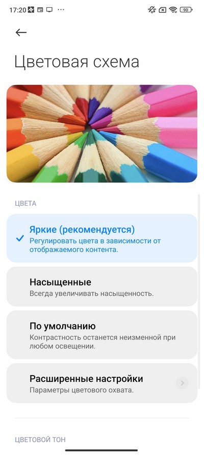 Настройки цветовой схемы и частоты обновления дисплея.