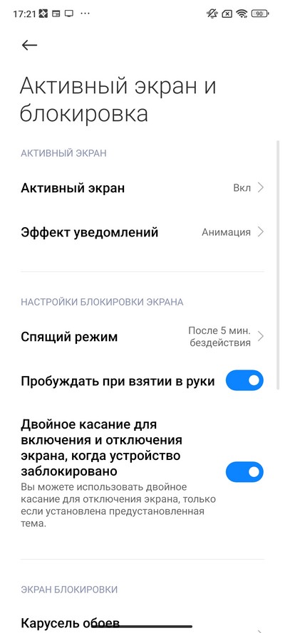 Режим постоянно включенного экрана здесь есть, но он такой же убогий, как у Redmi Note и некоторых других моделей Xiaomi - срабатывает только в течение 10 секунд после выключения или касания дисплея. На черта так сделано и почему пользовать сам не может решить, как ему использовать активный экран - это величайшая загадка современности. Нет, конечно, иметь хоть такой 10-секундный AOD, который появляется при постукивании по выключенному экрану на 10 секунд - это явно лучше, чем не иметь никакого AOD, но тем не менее. У топовых моделей вроде они добавляют возможность все время держать включенный AOD или включать по расписанию. Здесь же такого нет - только 10 секунд.
