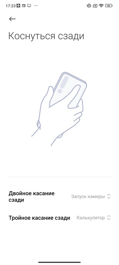 Также можно запускать определенное приложение по касанию задней части смартфона. Кстати, это будет работать даже с чехлом, потому что касаться нужно панели с камерами, а чехол ее оставляет свободной.