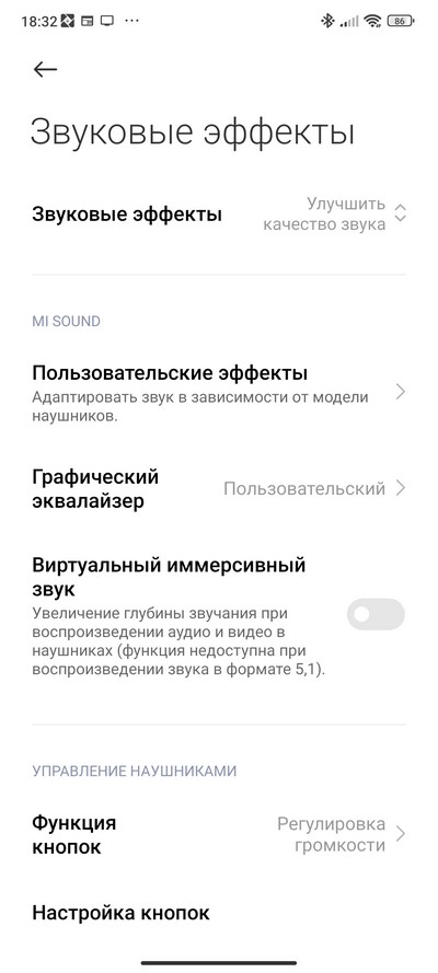 Как обычно, есть настройки под разные типы наушников, звуковые эффекты.