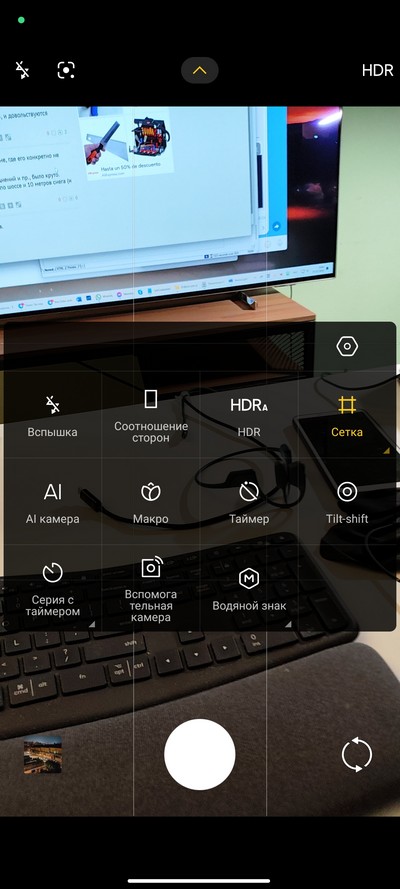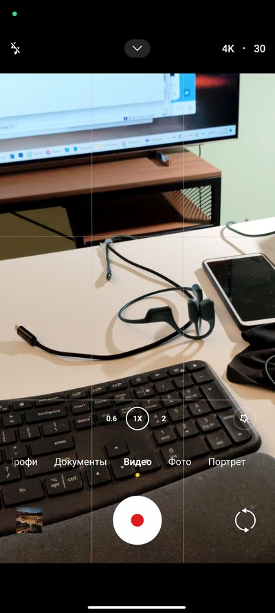 Интерфейс камеры. Снизу переключаются режимы: профи, документы, видео, фото, портрет, ночь и еще (набор настраивается). Выше переключение между сверхшириком, основной камерой и цифровым зумом (по умолчанию 2-кратный или 4-кратный, но можно вызвать линейку зумов и масштабировать до 10-кратного). Сверху - пиктограммы различных переключателей и пиктограмма меню.  На правом скриншоте - окно меню с настройками.