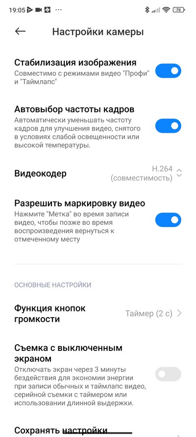 Настройки камеры.