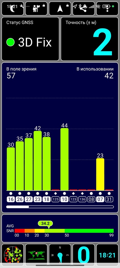 Навигация: GPS (L1+L5), GLONASS (G1), BDS (B1I+B1c+B2a), GALILEO (E1+E5a), NavIC (L5)