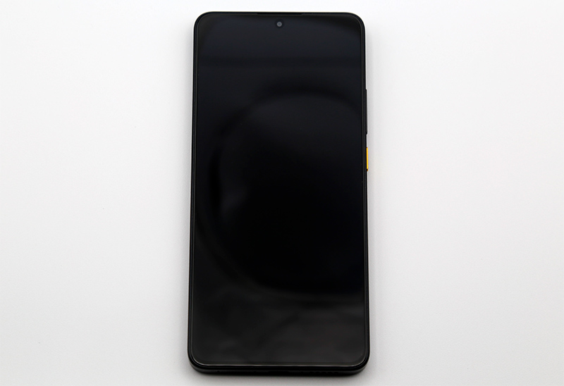 Лицевая часть ровная, без скошенных краев. Дисплей покрыт защитным стеклом последнего поколения Corning Gorilla Glass 7i. Стекло дисплея накрыто тонкой защитной пленкой, которая не влияет на чувствительность сенсорного слоя, однако довольно активно собирает пыль.