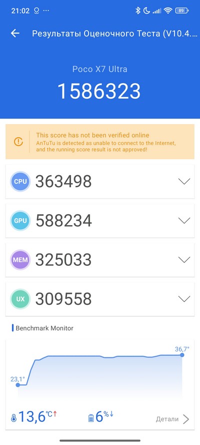 Рейтинг по AnTuTu. И это прям круто для данной ценовой категории, обычно платформы там выдают в AnTuTu где-то 700-800 тысяч. Здесь - в два раза больше.