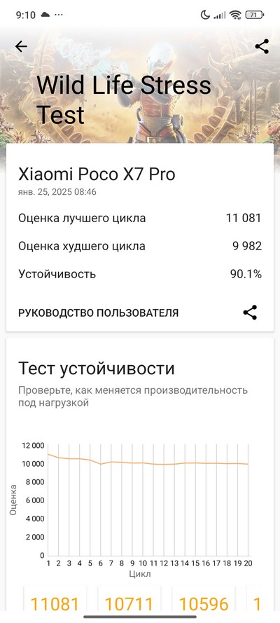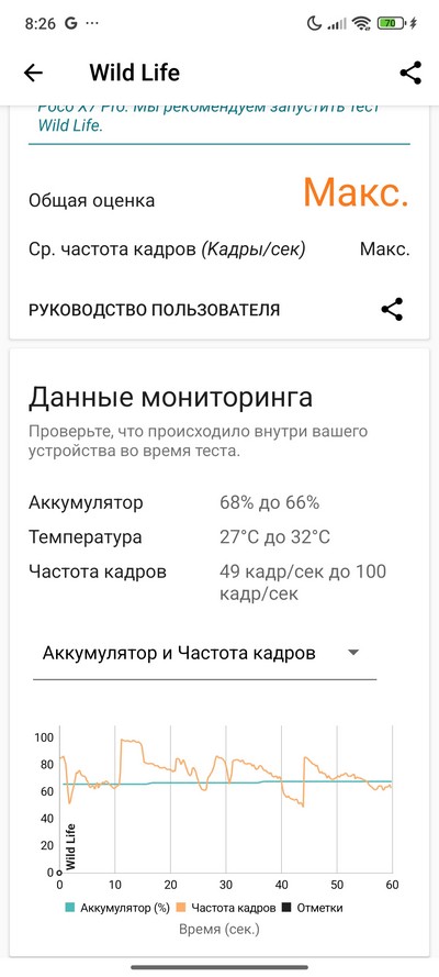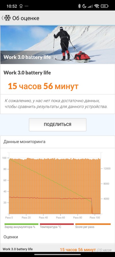 Синтетический тест PCMark. Хороший показатель, это означает, что при серьезной нагрузке весь день смартфон должен продержаться.