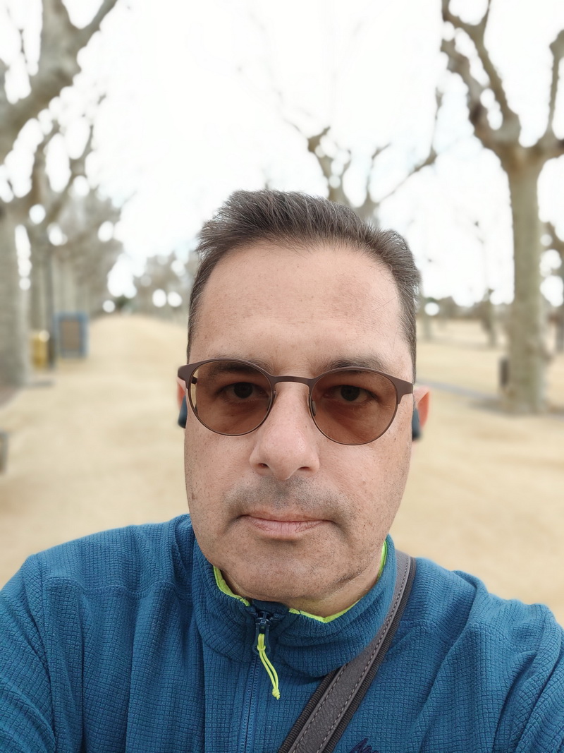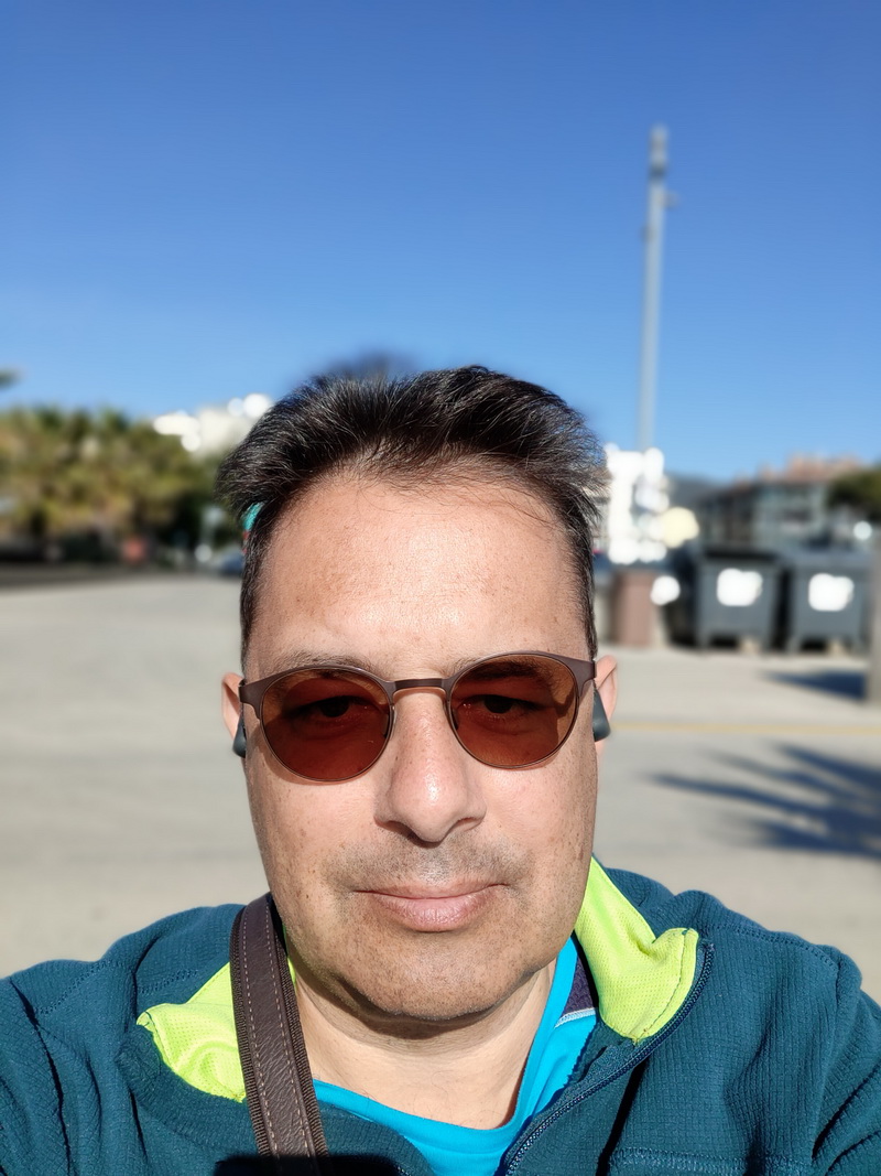 Солнечный день, селфи в режиме портрета. С размывом тоже проблемы, вон, часть волос сожрало.