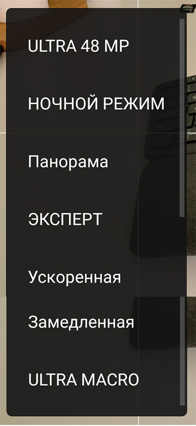 Интерфейс камеры - стандартный для современных смартфонов. Снизу переключатели: видео, фото, портрет. Меню слева - дополнительные режимы. Над основными режимами кнопка переключения камер: сверхширик, основная камера, двукратное увеличение (цифровое), пятикратное увеличение (также цифровое).