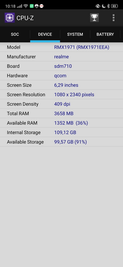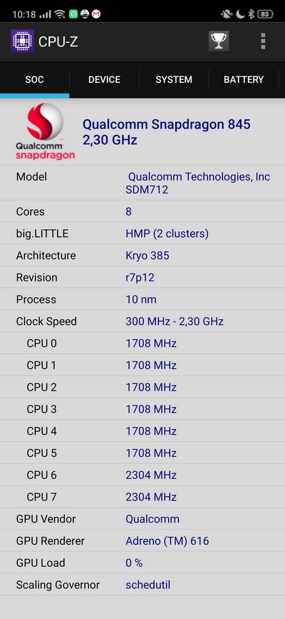 Платформа: Qualcomm SDM712 Snapdragon 712 (10 нм), CPU Octa-core (2 × 2,3 ГГц Kryo 360 Gold & 6 × 1,7 ГГц Kryo 360 Silver)