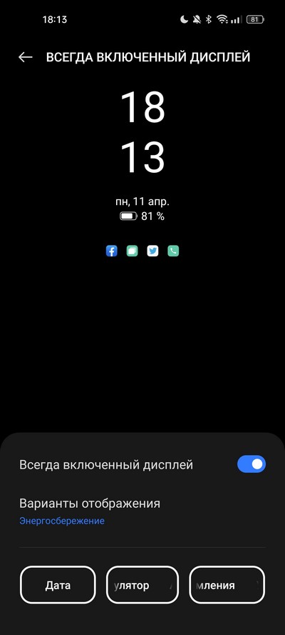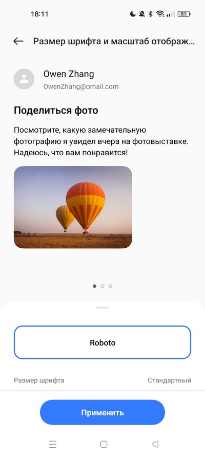 Регулировка размера шрифта и масштаба отображения, режим постоянно включенного экрана.