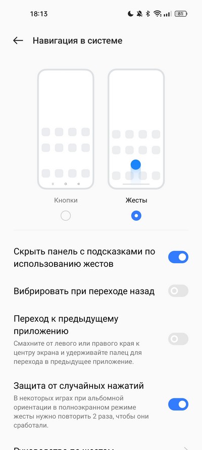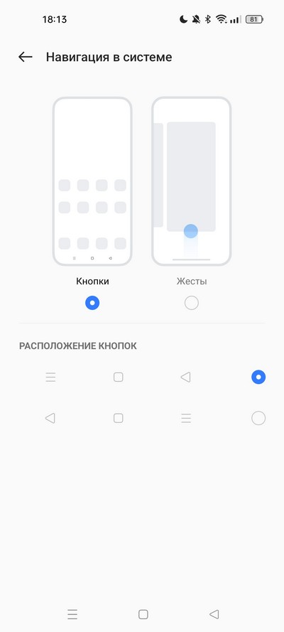 Стандартные варианты управления: настраиваемые экранные кнопки и обычные жесты. У Realme 7 был еще третий вариант - жесты прокрутки, когда все жесты идут от низа экрана, но тут это почему-то убрали, а жаль.