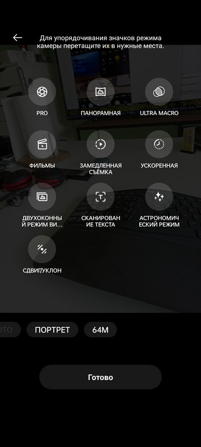Дополнительные режимы съемки, которые можно настраивать.