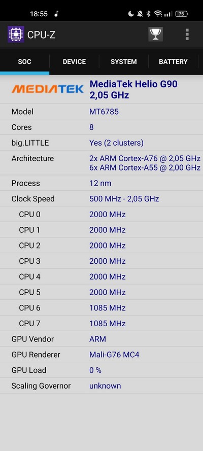 Процессор: MediaTek Helio G95, 6 ядер, техпроцесс 12 нм