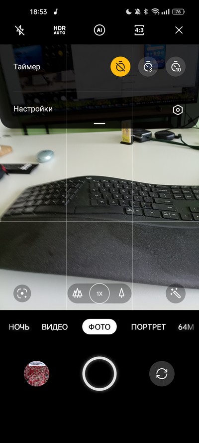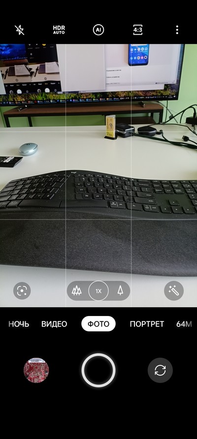 Интерфейс камеры. Сверху - быстрые переключатели, меню с настройками, снизу - переключение между двумя камерами и цифровым зумом, еще ниже - переключение режимов съемки.