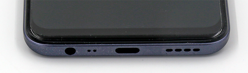 На нижней грани - аудиовыход, микрофон, порт USB-C, прорези динамика.