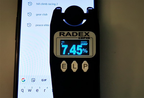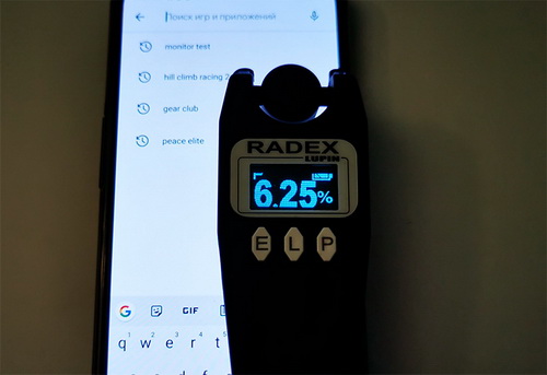 Сначала без подавления мерцания. Измерять буду прибором Radex Lupin (на "Хабре" есть подробный обзор этого устройства).