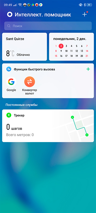 Сдвиг главного десктопа вправо - открывается так называемый "Интеллектуальный помощник". Это всякие настраиваемые виджеты.
