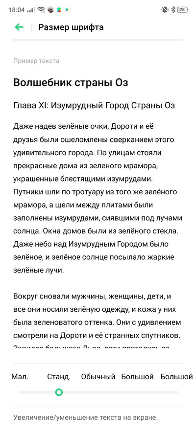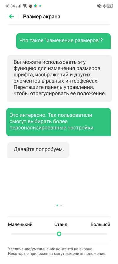 Регулируются размер шрифта и масштаб отображения элементов.