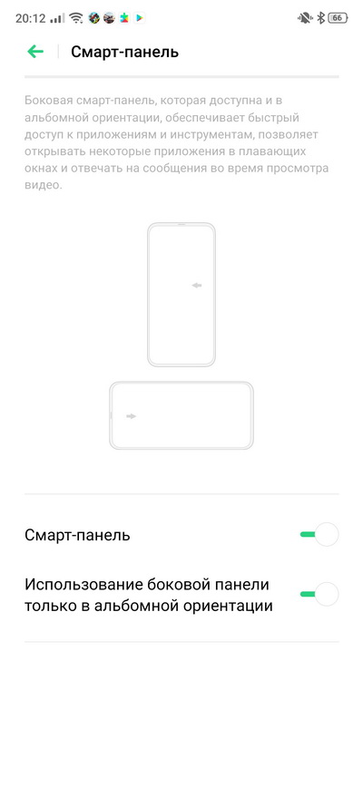 Включение смарт-панели для быстрого доступа к приложениям.