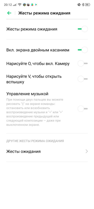 Включение жестов.