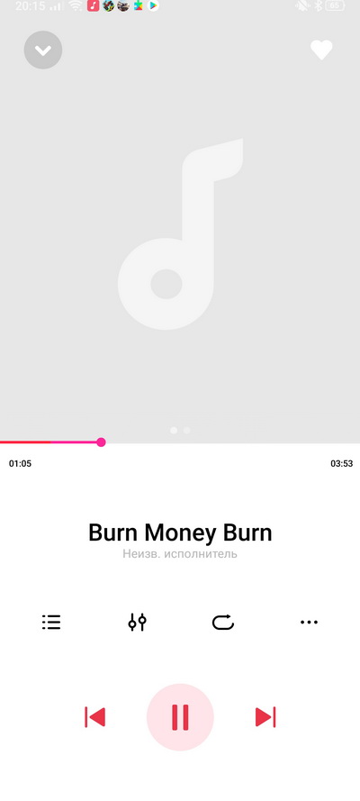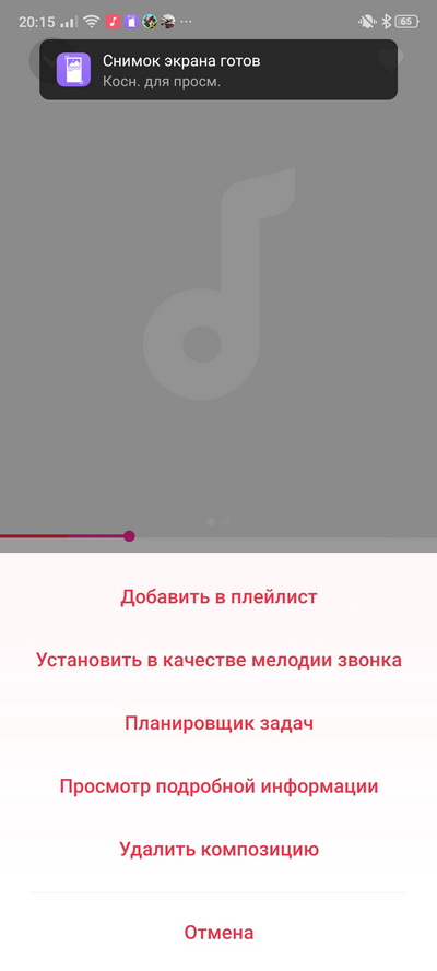 Меню при проигрывании аудиотрека.