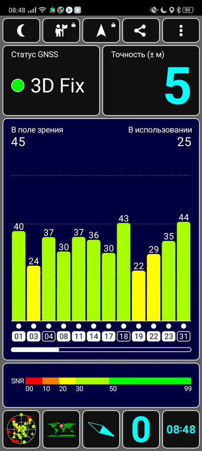 Холодный старт занял буквально секунду, спутники определяются отлично.