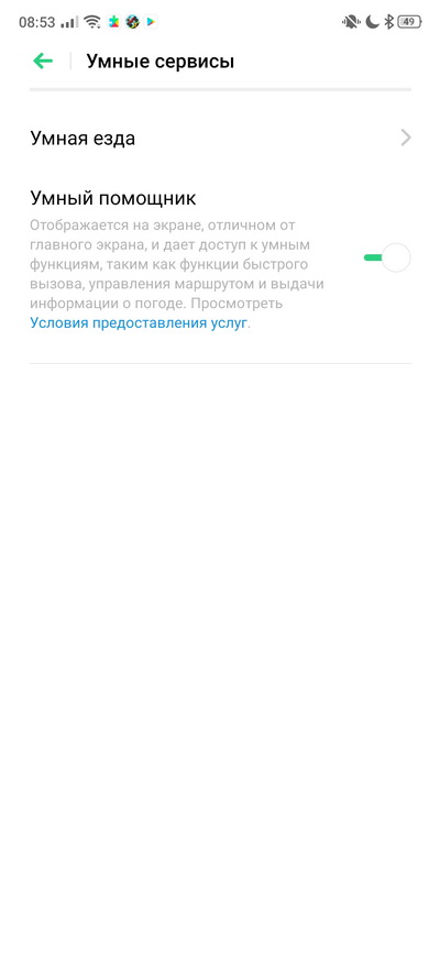 Так называемые "умные сервисы". "Умный помощник" - это экран с виджетами, который появляется при свайпе главного десктопа вправо. "Умная езда" - режим, при котором смартфон не будет отвлекать водителя уведомлениями.