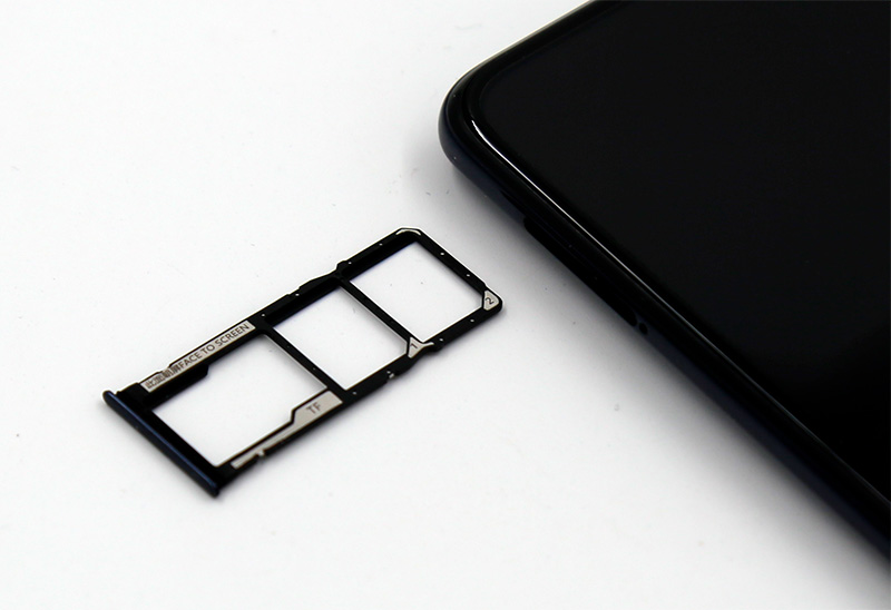 На левой грани - слот для вставки с сим-картами и картой памяти.