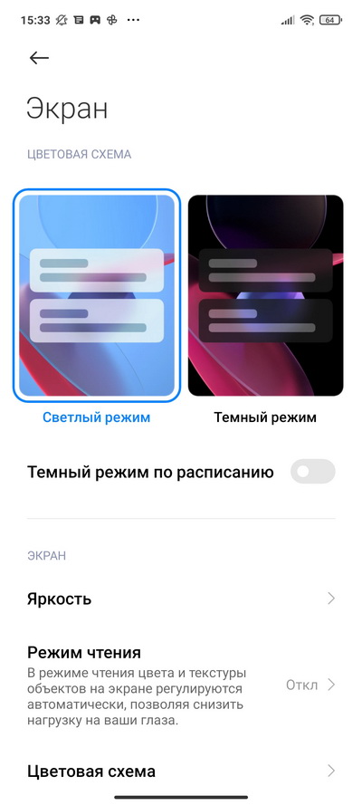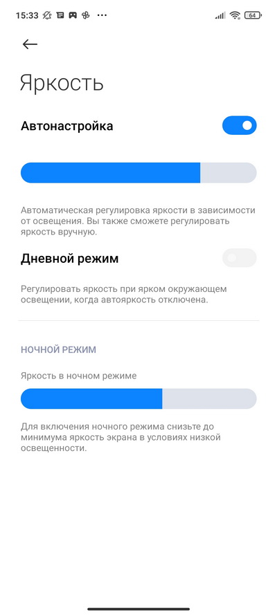 Настройки дисплея, настройки яркости. Отдельно задается яркость для ночного режима.