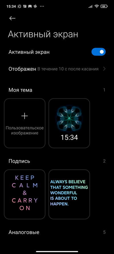 К моему неимоверному удивлению я выяснил, что активный экран может работать только в течение 10 секунд. Причем там написано, что это рекомендовано, но поменять данный параметр нельзя. Что, как вы понимаете, сводит все удобство получения информации на экране выключенного смартфона к нулю. Почему так по-идиотски сделано - это для меня огромная загадка. Почему нельзя было предоставить пользователю самому решать, каким он хочет видеть режим постоянно включенного экрана, не понимаю в упор. Остается только надеяться, что это какая-то недоработка прошивки и что в следующем обновлении появится возможность отображать информацию на выключенном экране постоянно. Пока же это выглядит полным дурдомом.