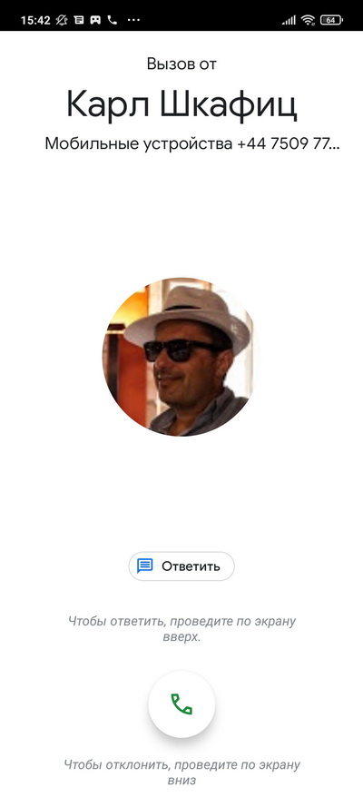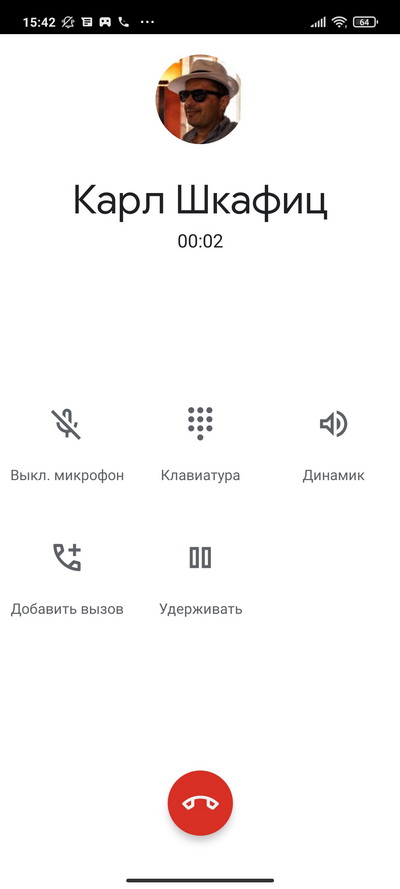 Входящий звонок и режим разговора. Записи разговоров здесь нет.