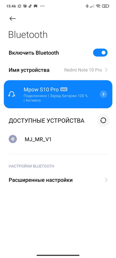 Для проверки беспроводного звучания подключил наушники Mpow S10 Pro. Они подключились по AAC. Звук - отличный: чистенько, очень хорошая детализация, отличные средние и высокие, отличный запас по громкости - даже в шумном окружении ставил громкость где-то на 75%.