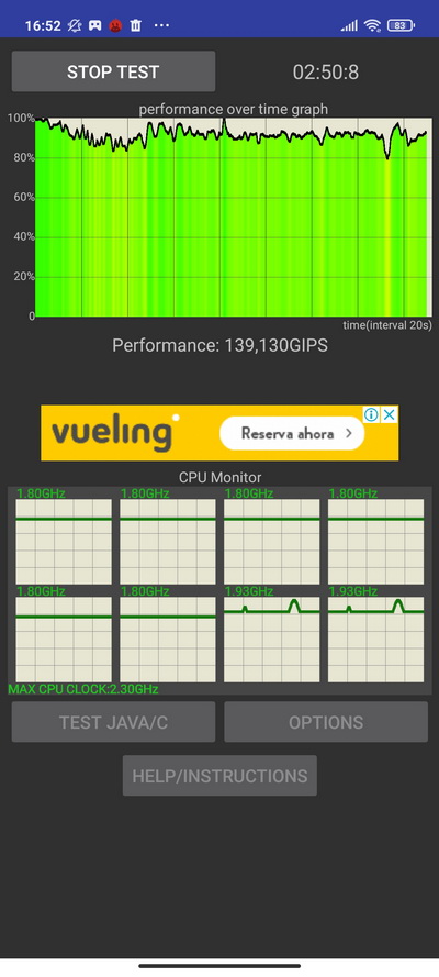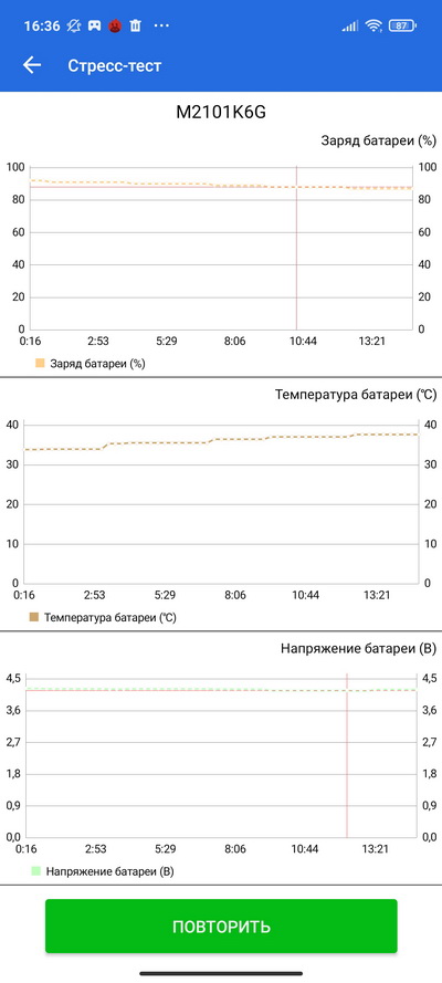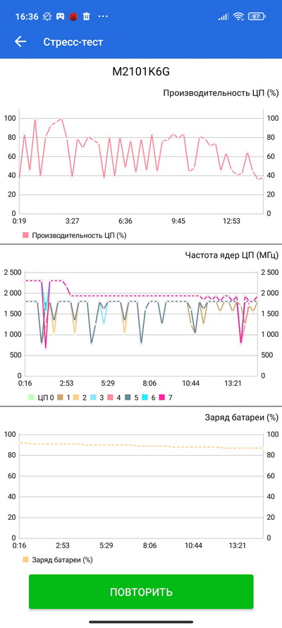 Тест на троттлинг - все прилично, падения производительности почти нет.