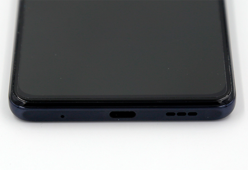 На нижней грани - микрофон, порт Type-C, прорези стереодинамика.