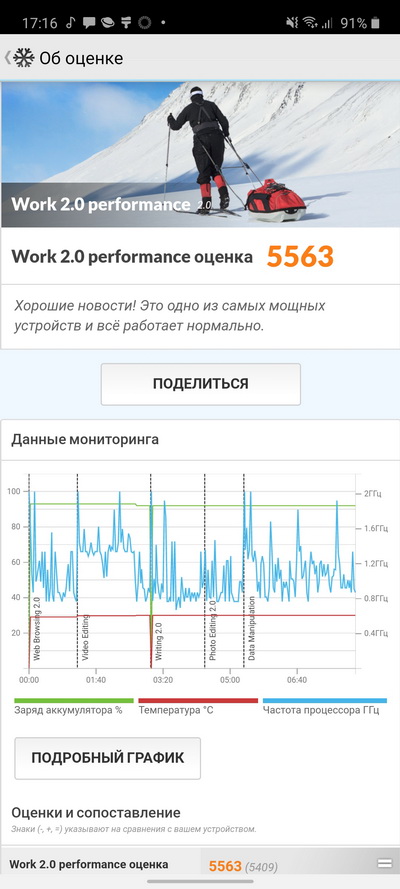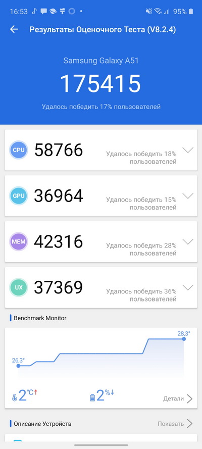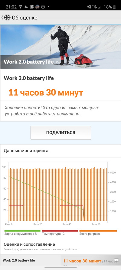 Стресс-тест от AnTuTu. Температура батареи при этом держалась в районе 30 градусов.