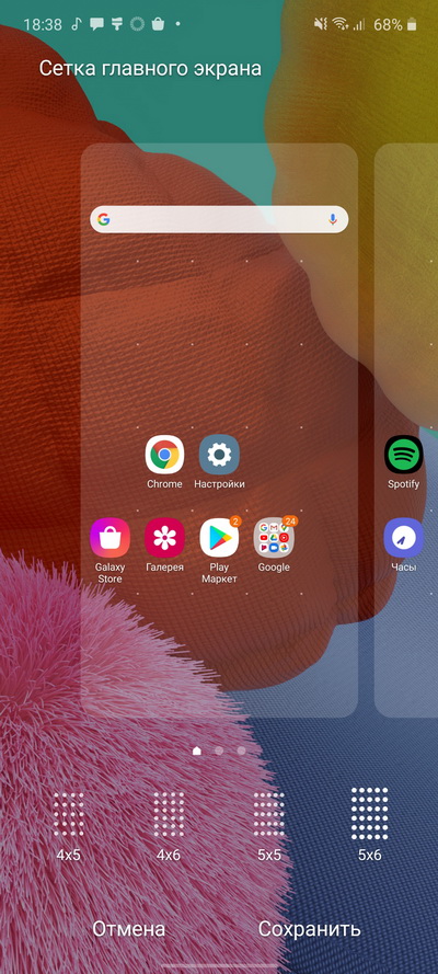 Главный экран настраивается: там можно менять сетку как десктопов, так и окна приложений.