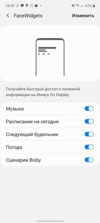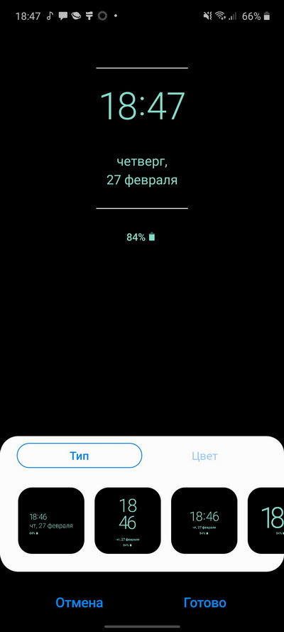 Вообще, нужно сказать, что режим постоянно включенного экрана у Samsung самый продвинутый по сравнению со всеми остальными производителями. И вариантов отображения много, и все очень гибко настраивается.