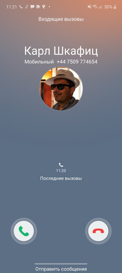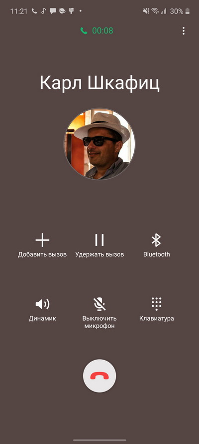 Входящий звонок и режим разговора. Слышимость очень хорошая, шумоподавление работает эффективно.
