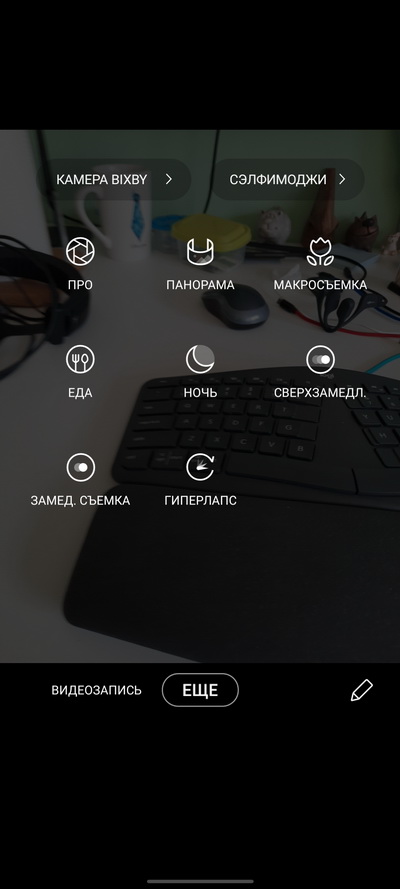 В разделе "Еще" - дополнительные режимы, камера Bixby и селфи-эмодзи.