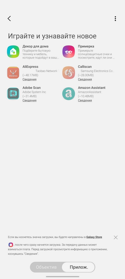 Камера Bixby пытается распознать объект и вывести о нем информацию, приложения предлагают всякие забавные возможности - например, прикинуть, какие солнечные очки вам подойдут, а также подобрать мебель и декор для дома.