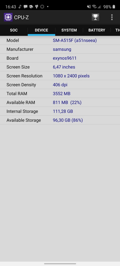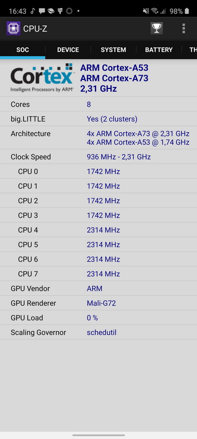 Платформа: Exynos 9611 (10 нм), 4 ядра Cortex A73 с частотой до 2,3 ГГц и 4 ядра Cortex A53 с частотой до 1,7 ГГц