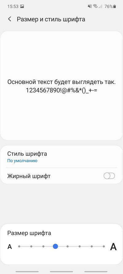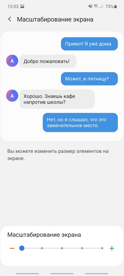 Настраиваются размер шрифта и масштаб элементов.