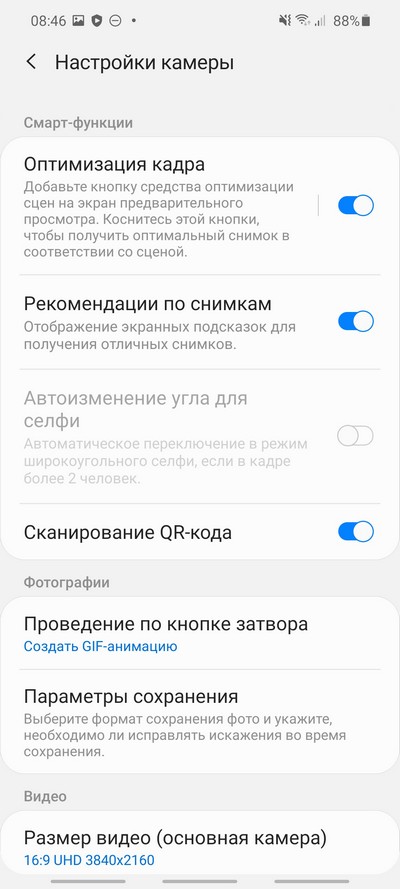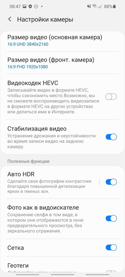 Настройки камеры и видео.