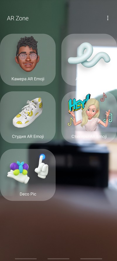 Присутствует традиционное приложение Bixby Vision, которое снимает какой-то предмет и пытается найти в Интернете информацию о нем (работает это очень так себе, практическая польза подобного лично для меня - сомнительна), а также AR Zone со всякими эффектами.