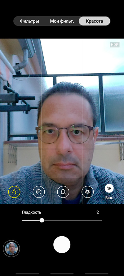 Кстати, здесь вообще как класс отсутствует режим "Портрет". Однако любителей портретов и селфи со всякими украшательствами сразу успокою: украшательства есть, просто их засунули в раздел фильтров: там есть вкладка "Красота".