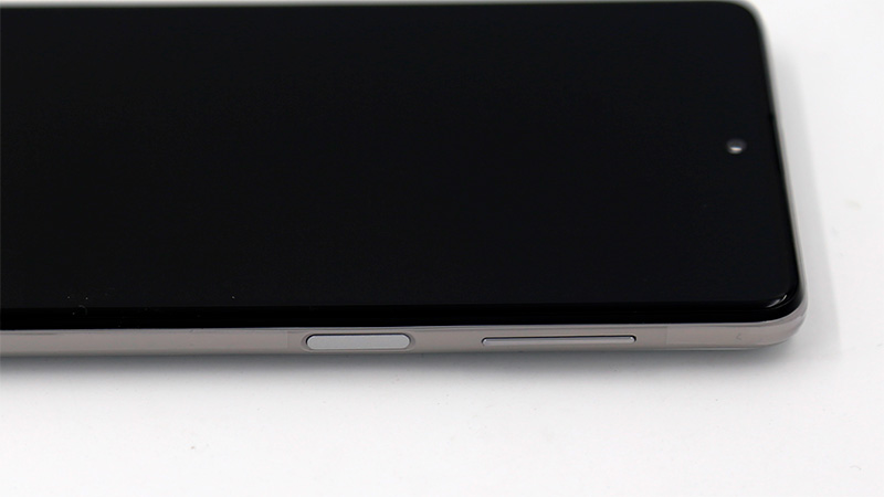 Отличные углы обзора, при сильных отклонениях белый цвет приобретает малозаметный голубоватый оттенок. Отличный запас по яркости, максимальная яркость 420 нит: на прямых солнечных лучах изображение хорошо различимо. Тонкие рамки, фронтальная камера помещена в небольшой круглый вырез сверху в центре.