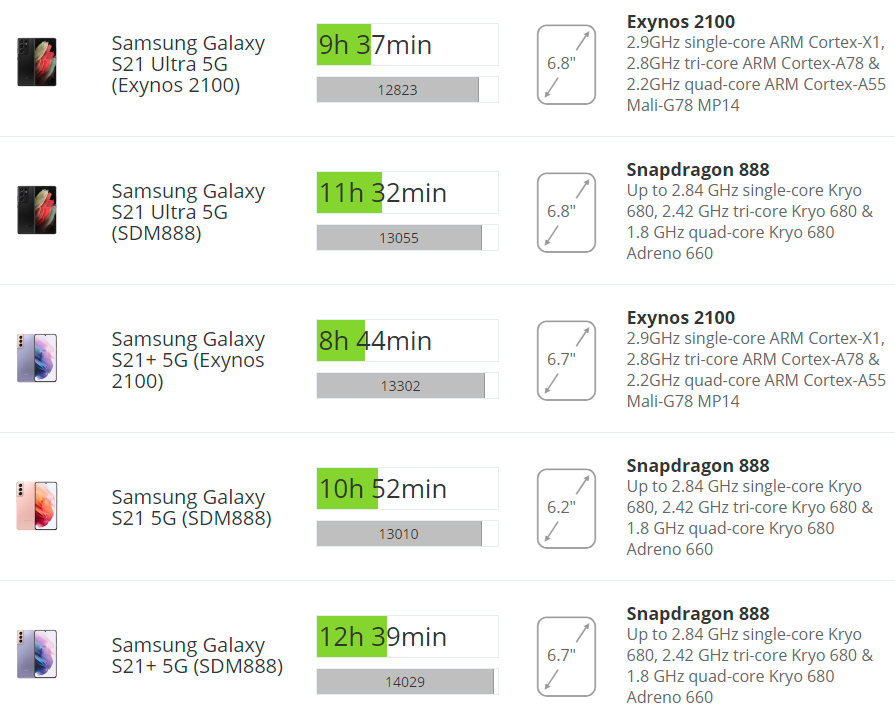 Однако подчеркиваю, что это версия на Snapdragon 865, версия на Exynos 990 показывает несколько меньшую автономность (тот же PCMark в батарейном тесте показывает где-то 11 часов 15 минут).