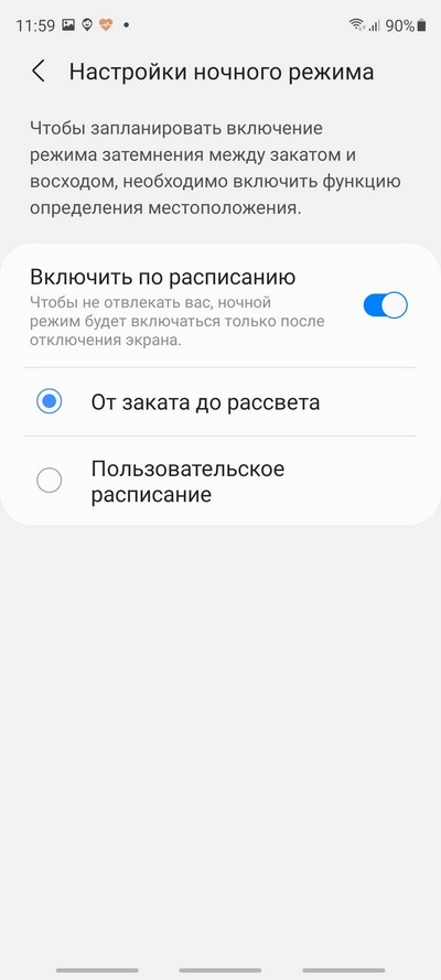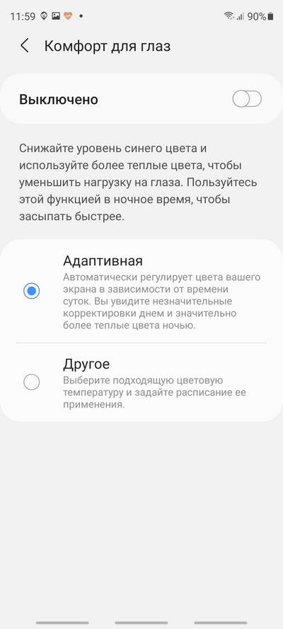 Снижение нагрузки на глаза вечером и ночью, режим экрана.