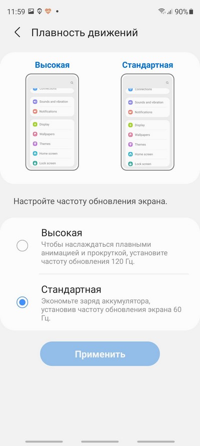 Включение повышенной частоты обновления экрана понижало автономность где-то на 20-25%, и два дня смартфон уже не жил: в конце первого дня оставалось менее половины заряда, так что реально хватало максимум на полтора дня.