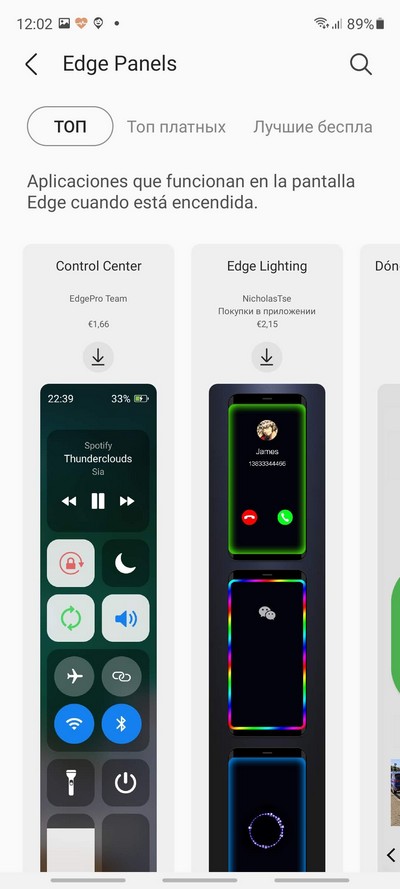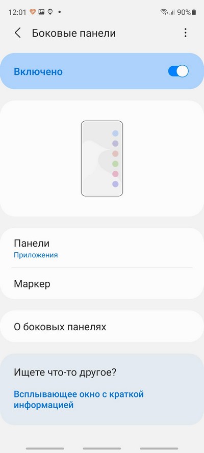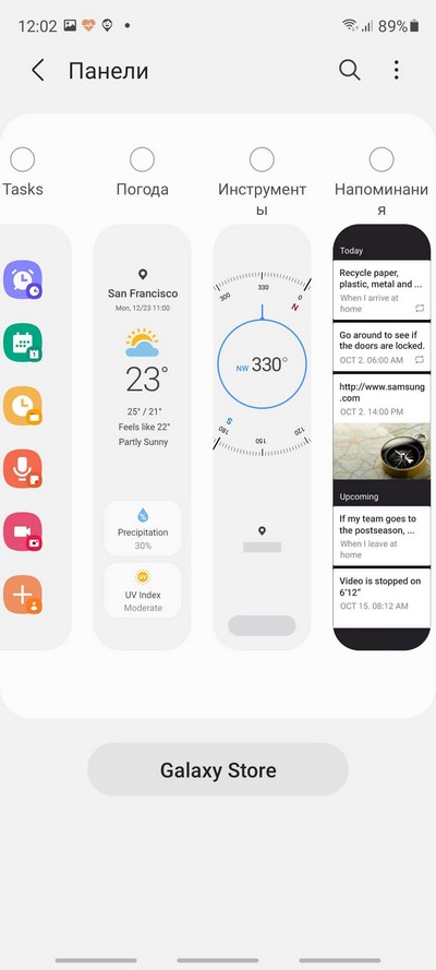Виды панелей Edge, скачивание новых панелей из магазина Samsung.